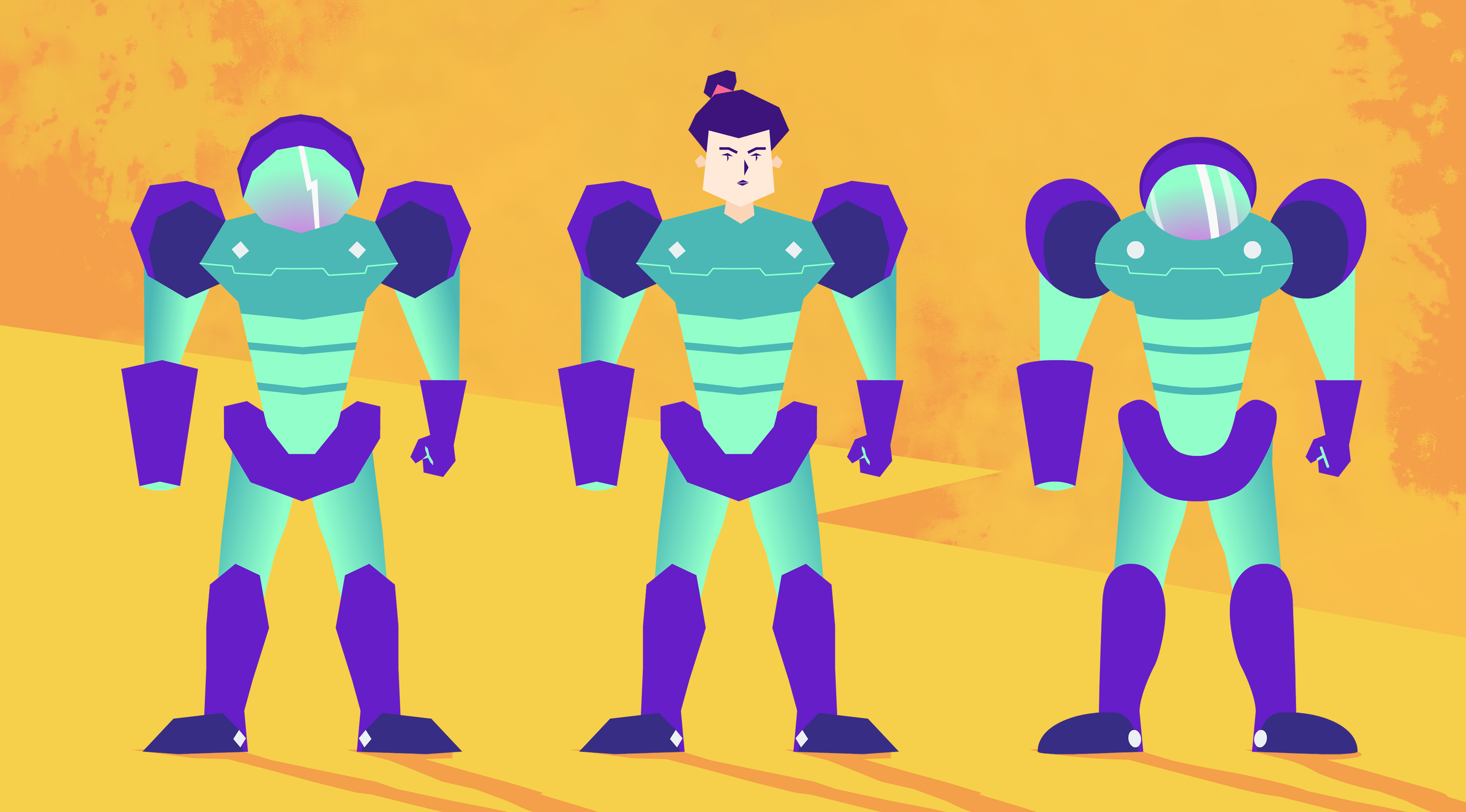 My part of the project was based on the Metroid franchise. I wanted it to be mixed media. The background was a 3D model and the characters were 2D overlays. I did the 3D work in After Effects and the character animation in Adobe Animate. All designs used are my own.