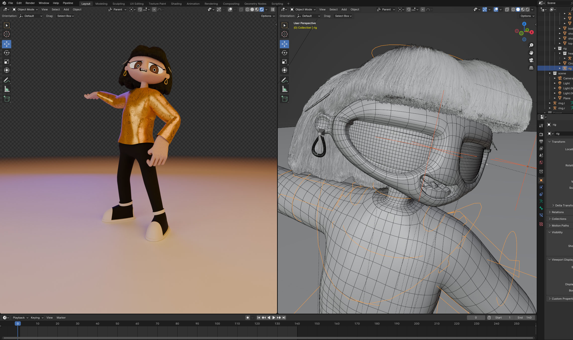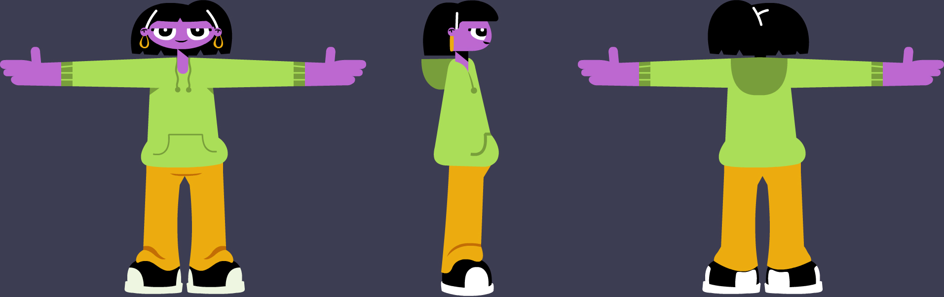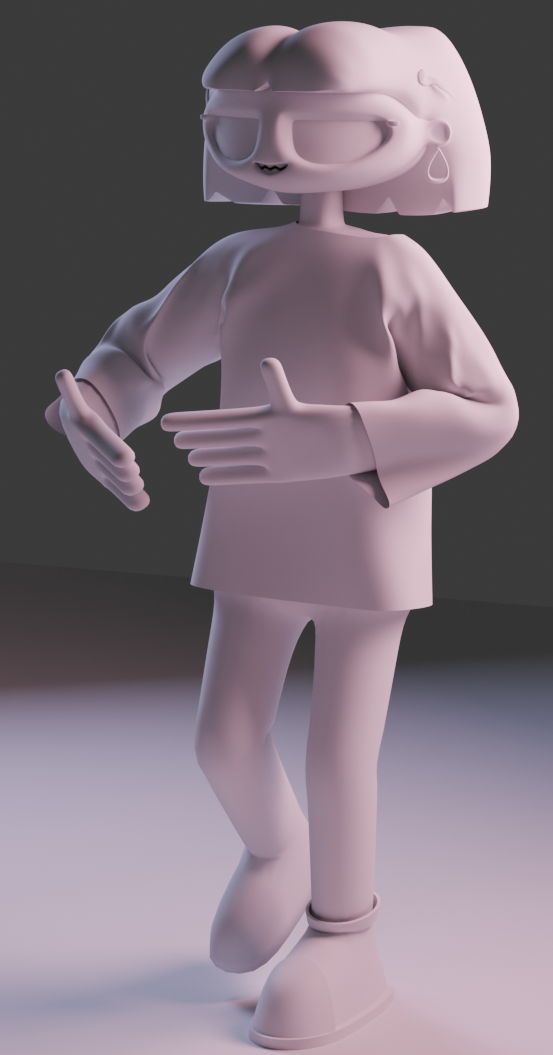 For this project I wanted to challenge myself by making a more complicated character model inside of Blender. I wanted to include in depth rig controls, cloth and physics simulations. I based the character design off an unused design from another project but switched out the character's outfit.